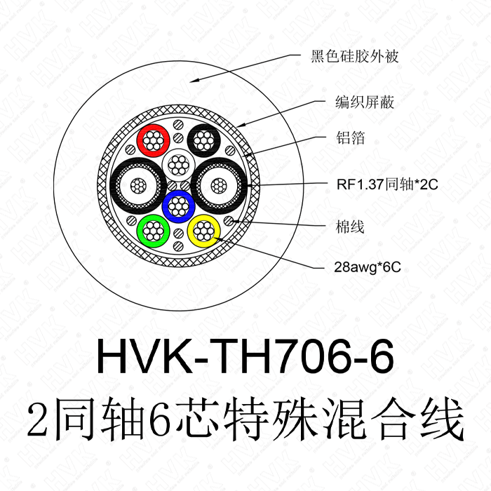 2同軸6芯特殊線硅膠黑色